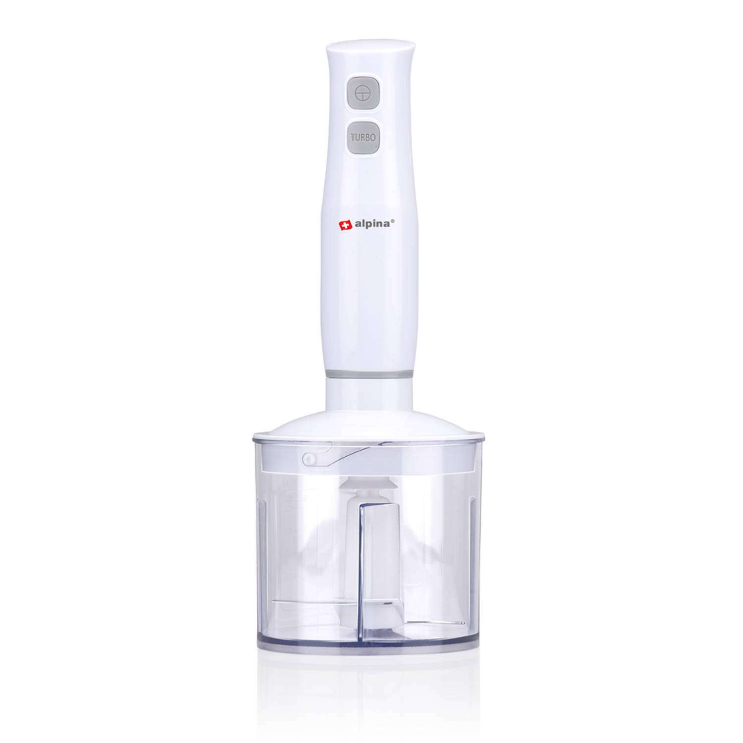 Alpina Botmixer szett: 400W-os teljesítmény, 2 sebességfokozat Ez az Alpina botmixer szett tökéletes választás a mindennapi főzéshez és turmixoláshoz. Két sebességfokozattal és praktikus aprítótartállyal rendelkezik, így könnyedén elkészítheted kedvenc leveseid, krémjeid és turmixaidat. Főbb jellemzők: 400W teljesítmény: Erőteljes keverés és aprítás. 2 sebességfokozat: Tökéletesen szabályozható sebesség a különböző feladatokhoz. 500 ml-es aprítótartály: Praktikus és könnyen tisztítható. Rozsdamenetes acél pengék: Tartós és éles pengék a tökéletes eredményért. Habverő funkció: Könnyedén készíthetsz habos tejszínt vagy tojáshabot. 230V-os csatlakozás: Egyszerű használat. Mitől lesz ez a botmixer a Te konyhádban is nélkülözhetetlen? Kiváló minőségű anyagaiból és strapabíró kialakításából adódóan hosszú élettartamra számíthatsz. A két sebességfokozatnak köszönhetően könnyedén alkalmazkodhatsz a különböző ételekhez, míg a habverővel a desszertek elkészítése is gyerekjáték lesz. A 500 ml-es aprítótartály pedig ideális kisebb mennyiségű ételek feldolgozásához.